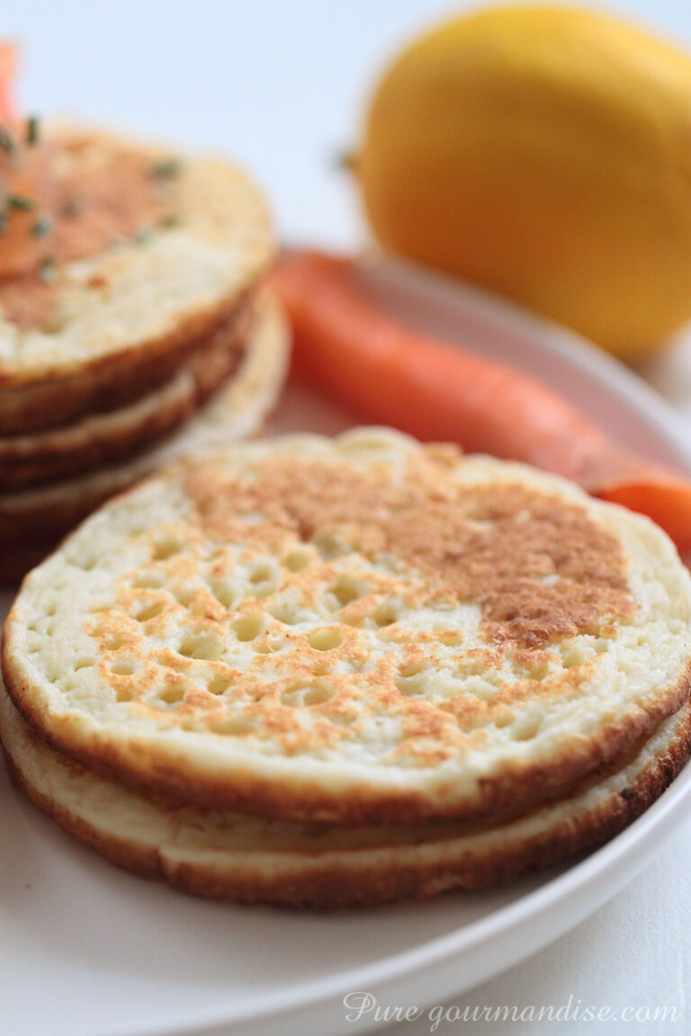 Comme j’ai une plaque de cuisson à induction, il m’a fallu trouver la poêle à blinis pour plaque à induction idéale. J’ai opté pour une poêle pour grands blinis ou pancakes : ils mesurent 10 cm de diamètre et sont 4 sur la poêle. Ma recette donne environ 20 blinis, ce qui est parfait pour 4 personnes par exemple, ou pour n’importe quel buffet plus grand avec plein d’autres choses à savourer. Il en résulte des blinis épais et moelleux qui restent frais pendant plusieurs jours (et peuvent même être congelés).