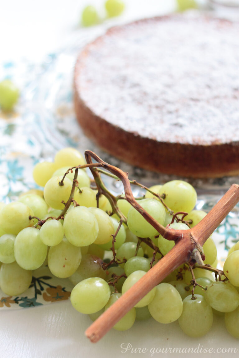 Je cherchais à créer un nouveau gâteau aux fruits d’automne. Mais pas aux pommes. Ni aux coings. Ni aux poires. J’en ai déjà fait trop de fois. Je voulais du changement. Et puis, je me suis dit que je n’avais jamais goûté de gâteau au raisin. Alors qu’en fait j’adore le raisin à l’automne, particulièrement le blanc, j’en achète même beaucoup (encore 1 kg aujourd’hui !).