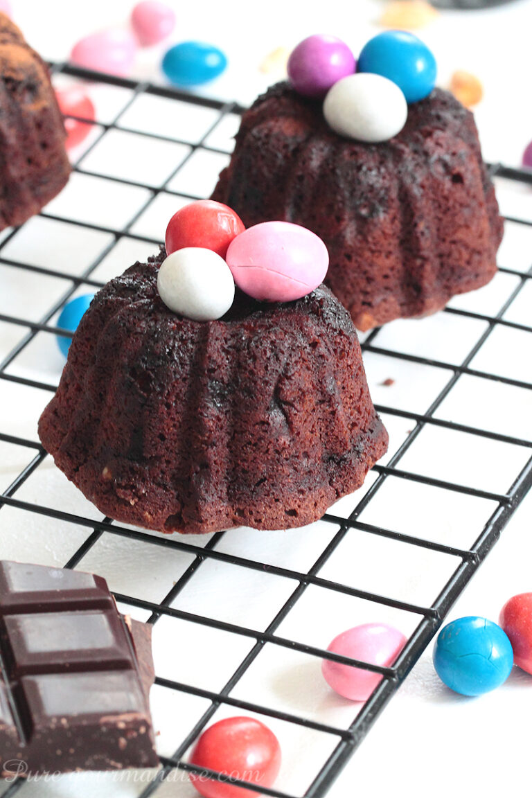 De mes recettes de Pâques, je pensais refaire mon nid de Pâques chocolat noisette. Et puis j’ai reposé mes yeux sur mon moule à mini Bundt, presque en forme de nids. Et je me suis dit que des nids de Pâques en version individuelle seraient l’occasion de changer un peu et de proposer une nouvelle recette.